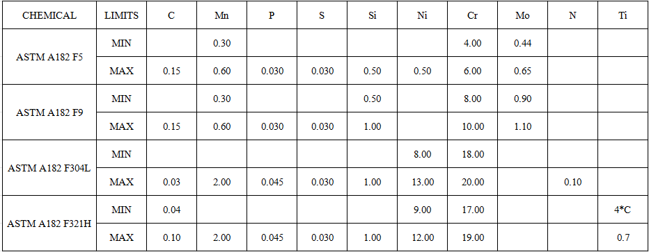 ASTM A182是美标高压锻制管件的材质标准,规定了合金材质,不锈钢材质和双相不锈钢等多种等级材质的化学成分,机械性能以及热处理等方面的要求,确保材料的硬度、韧性和强度。ASTM A182 锻制管件是一种具有良好性能和广泛应用领域的管道配件,其制造和检验标准严格保证了其质量和可靠性。