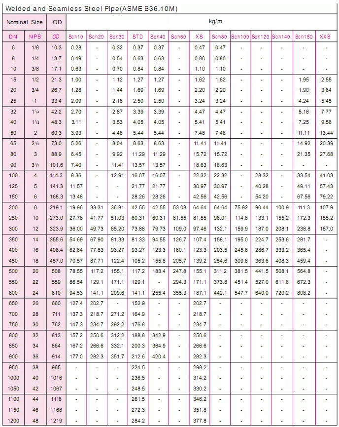 ASTM A335 P11合金钢管的尺寸范围广泛,可以满足不同行业应用的需求。其外径通常在1/8英寸到48英寸之间,而厚壁包含 SCH 40, SCH STD, SCH 80, SCH XS, SCH 160等规格。此外,根据具体的应用场景和客户需求,还可以定制其他特定尺寸的合金钢管。