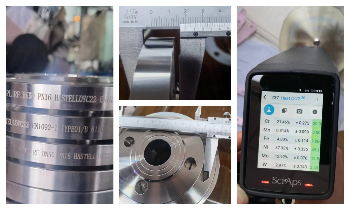 订单完成后,我们对这批法兰进行了出厂检验,确保客户收到的这批Hastelloy C22法兰符合EN1092-1标准参数要求。