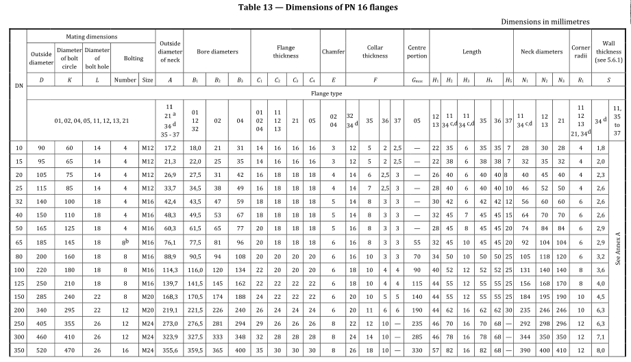 EN1029-1 PN16 法兰尺寸参数