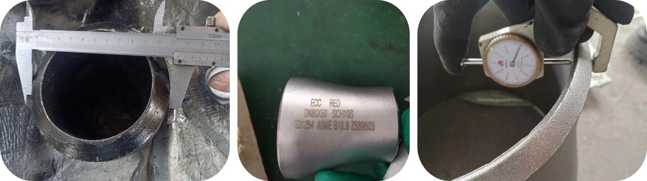 我们对大小头的检验是非常严格的。首先检查外观是否存在裂纹、重皮等缺陷。这些缺陷可能会影响其强度和密封性能。然后根据标准ASME B16.9 中的规定,检查大小头的尺寸是否符合要求,包括大端直径、小端直径、壁厚等。此外我们还要通过拉伸试验测定大小头的抗拉强度和屈服强度,以验证其强度是否满足标准要求。