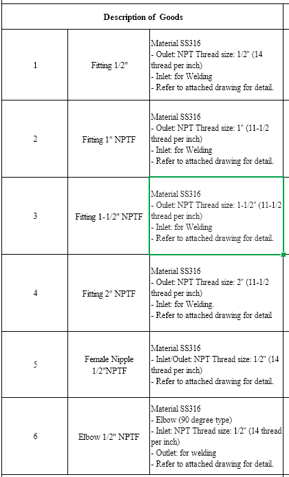 从订单明细可以看出,客户需要的产品是SS316不锈钢锻造管件,螺纹形式为NPT,我们按照客户提供的图纸,很快就完成了全部产品的加工制造。